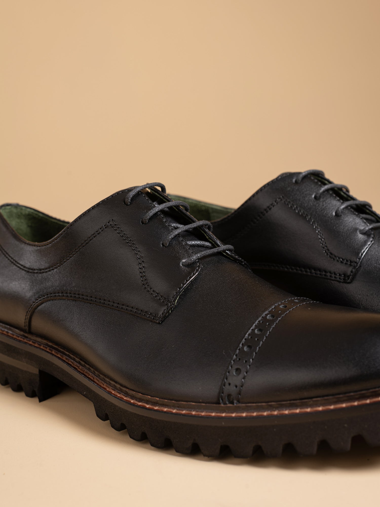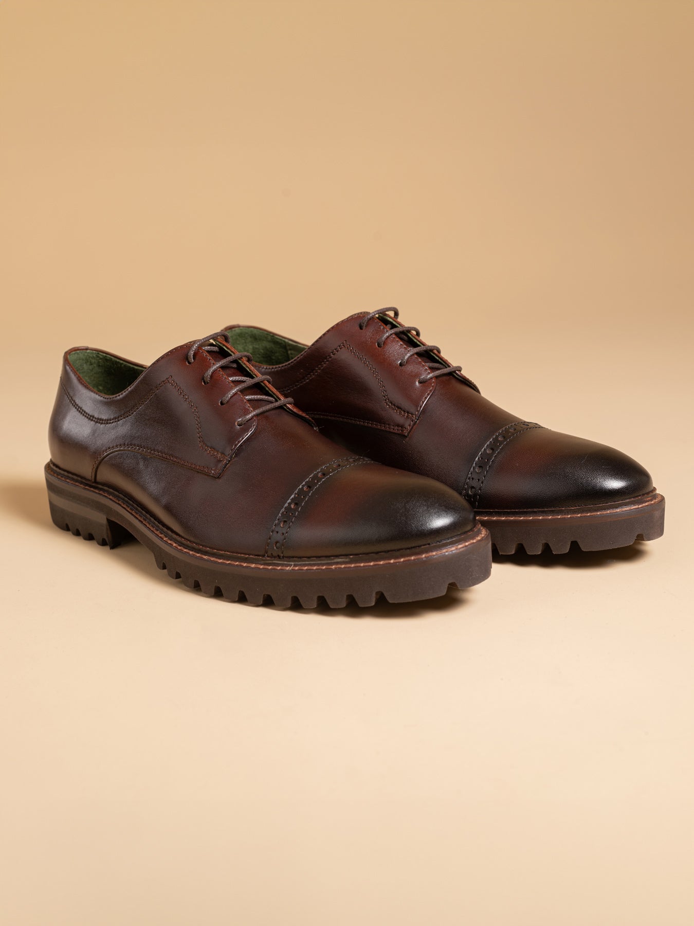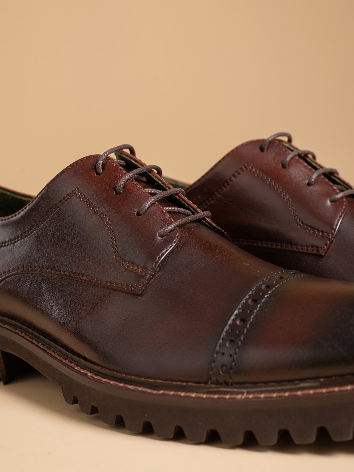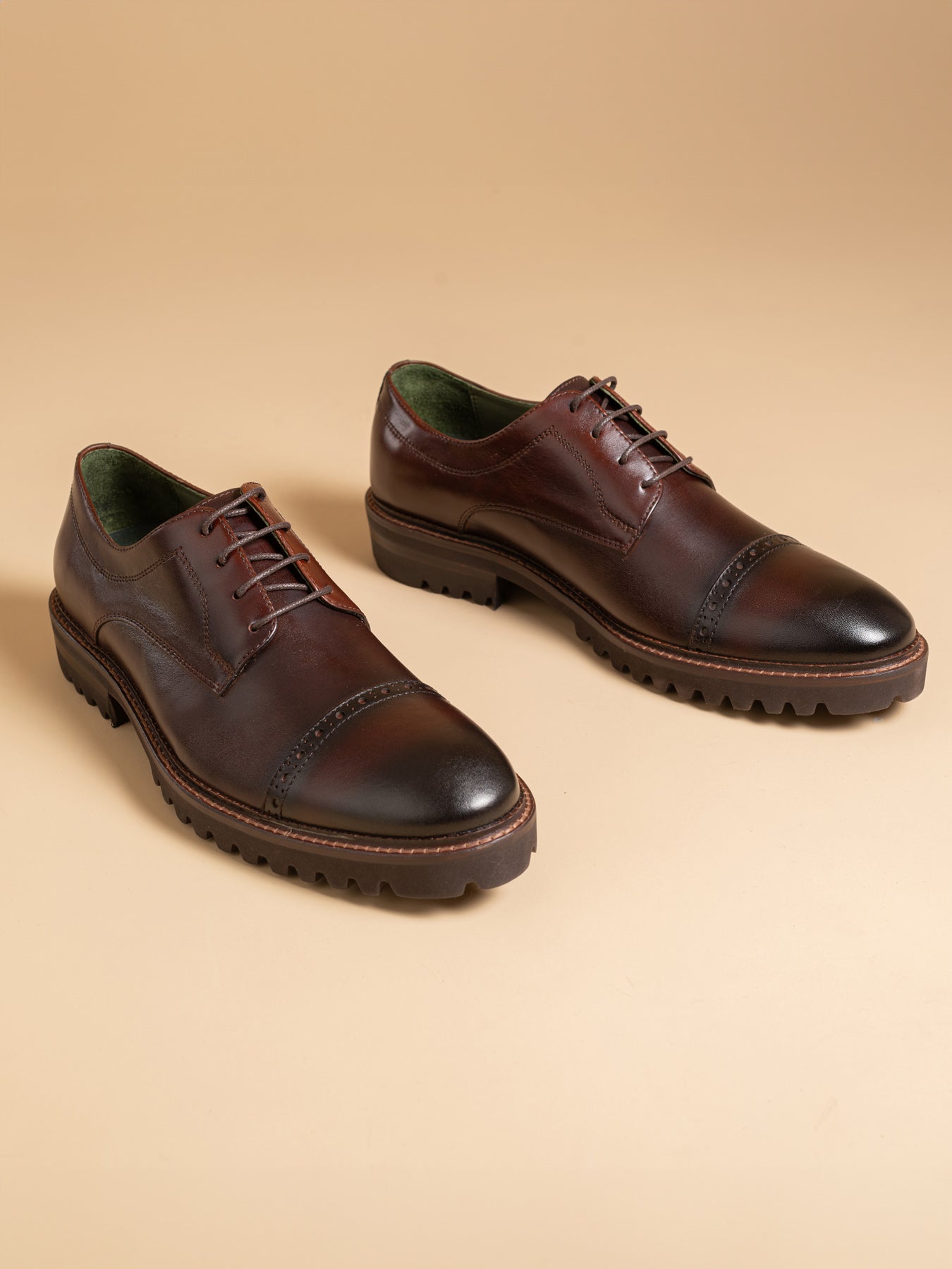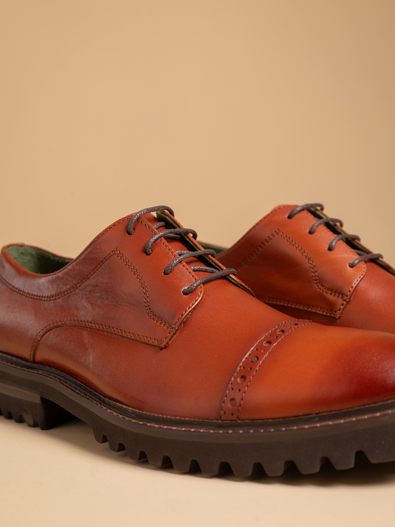 Our Dorsets are unlike any other shoes. They stand out due to the attractive elements and unpolished, simple appearance. Wave rubber soles and full brogue wingtips serve to display your fundamental appearance. However, the subtleties in the full grain leather's hand dyeing, the sturdy design, and the long-lasting materials indicate that you respect quality and longevity as well