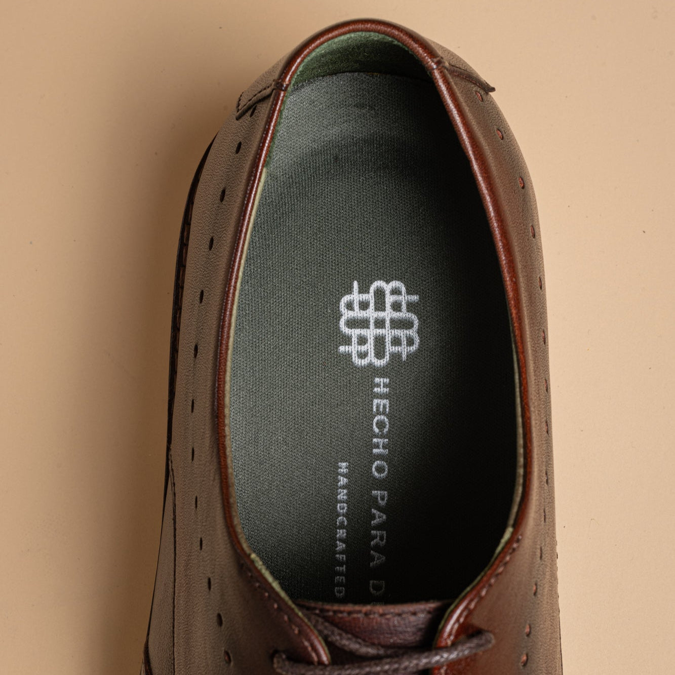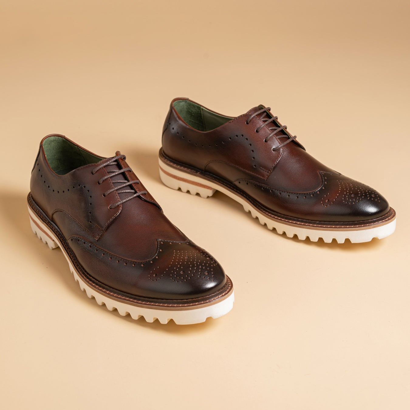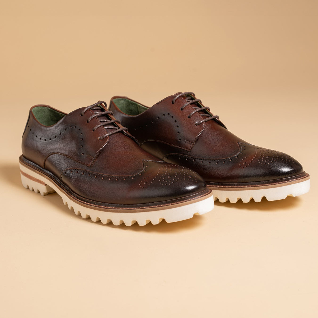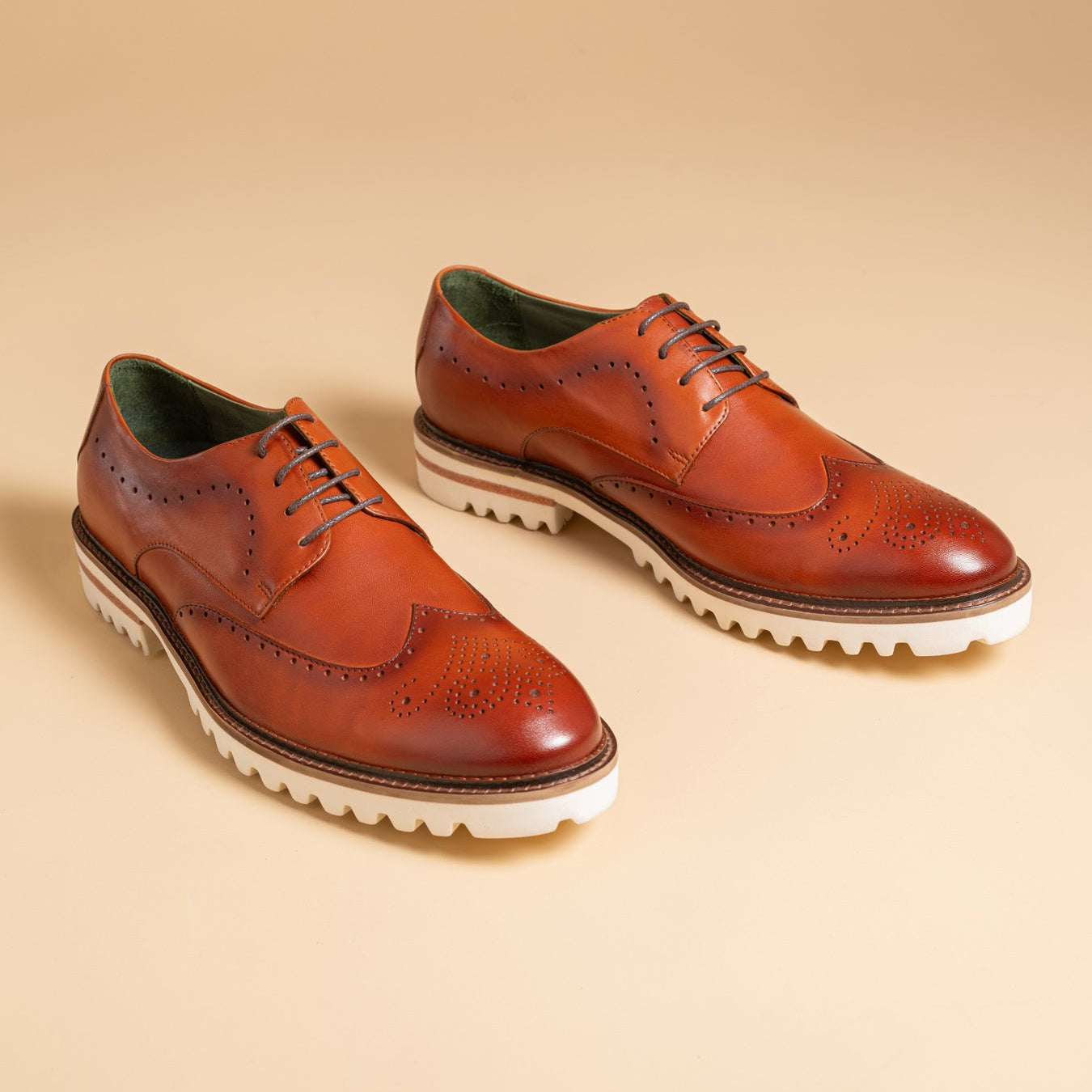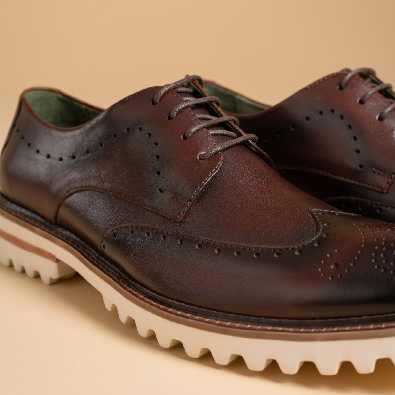 Introducing the Frome Derby Brogues: the top of versatility in footwear. Derby shoes bridge the gap between smart casual and formal attire easily, and our Frome model stands as the quintessential example. Originating from the practical country Brogue designed for outdoor use, the Frome Derby combines historical charm with modern utility. Recognized for its distinguished Brogue patterning, this shoe is perfect for those who value both form and function.