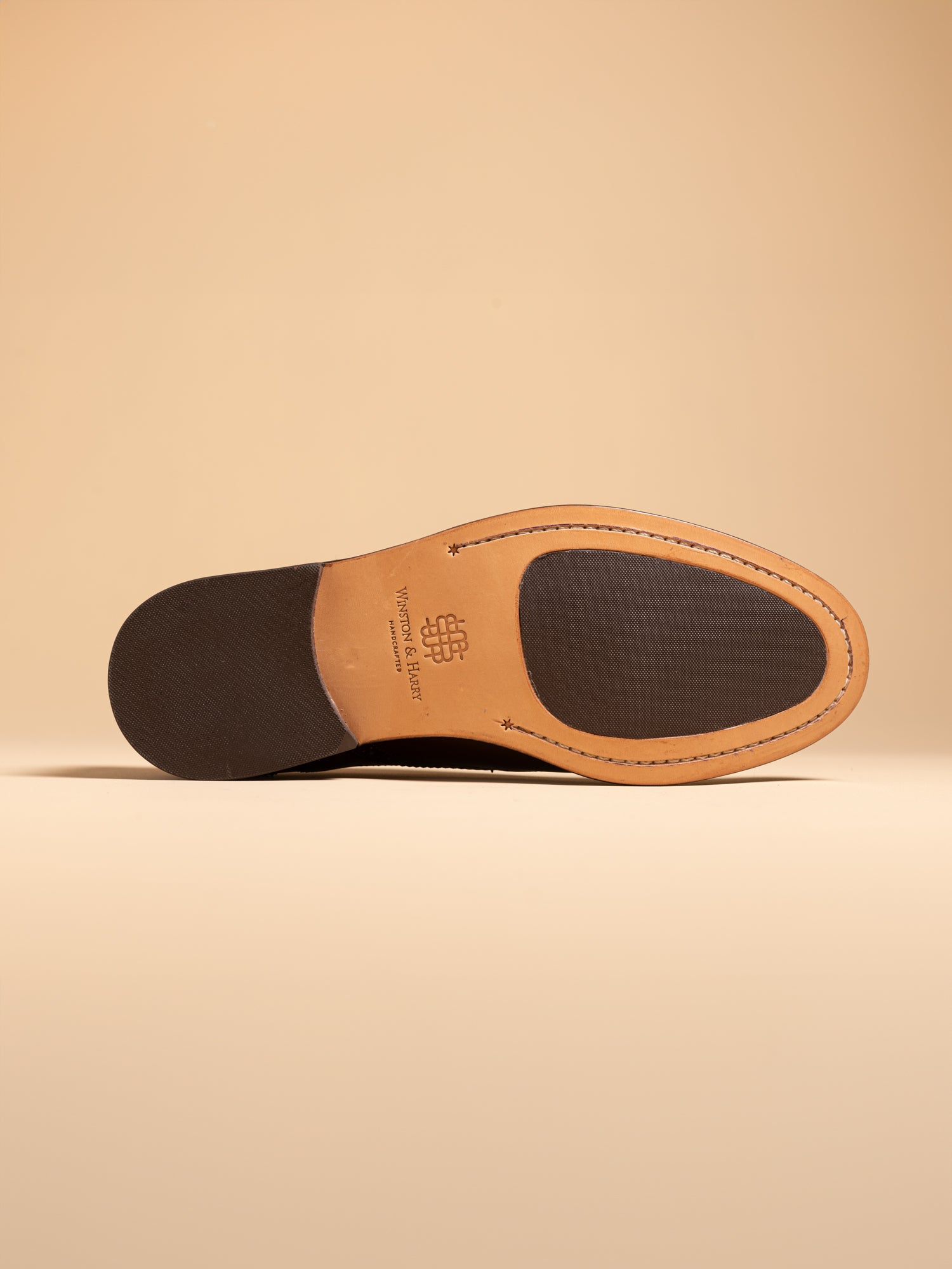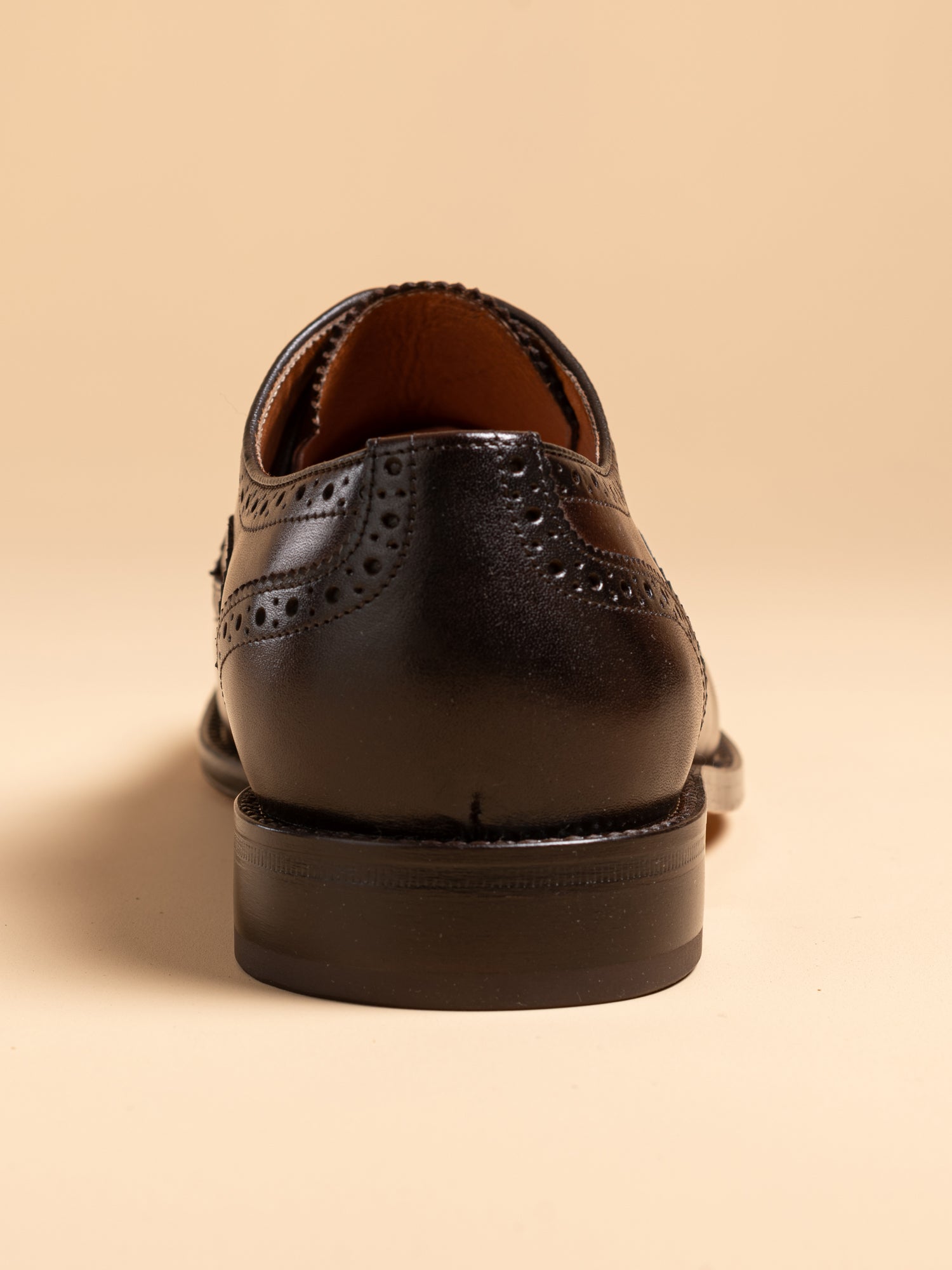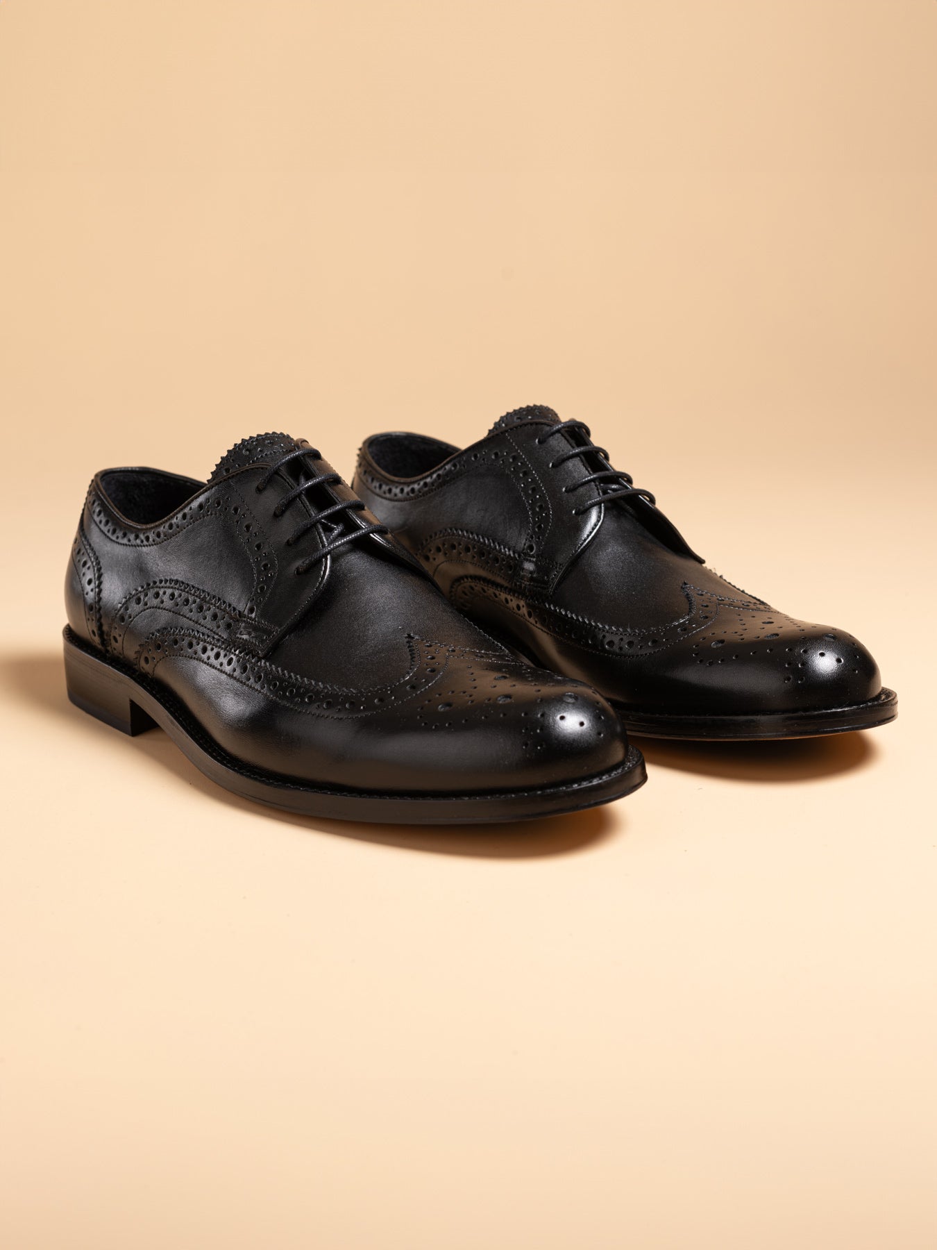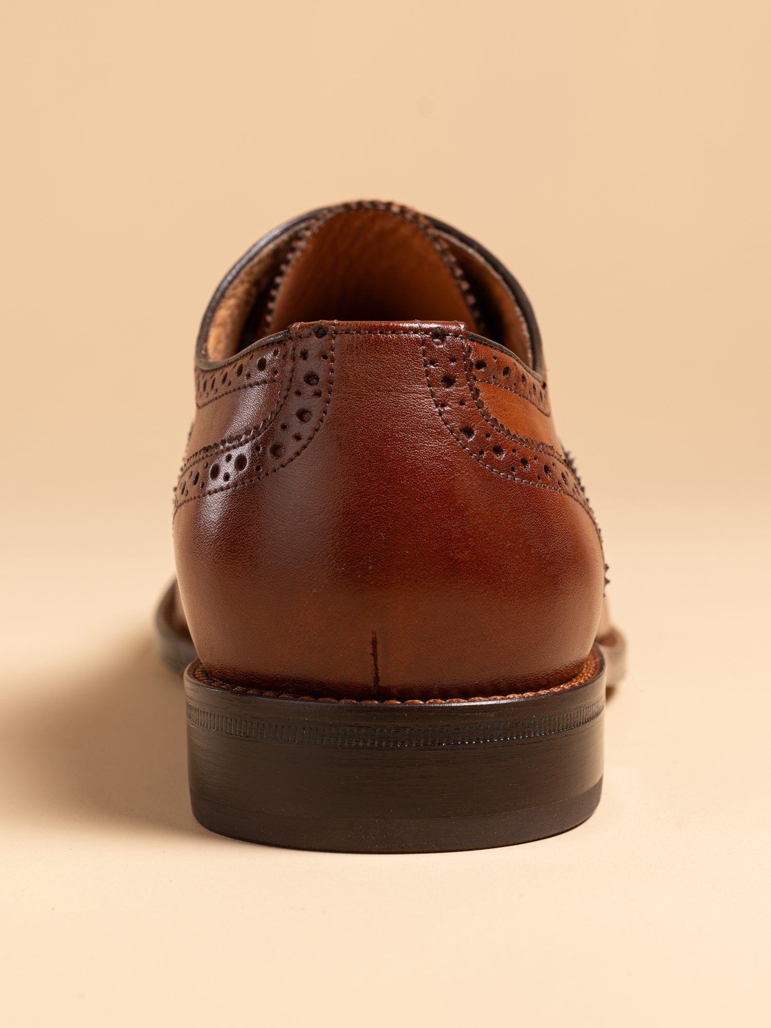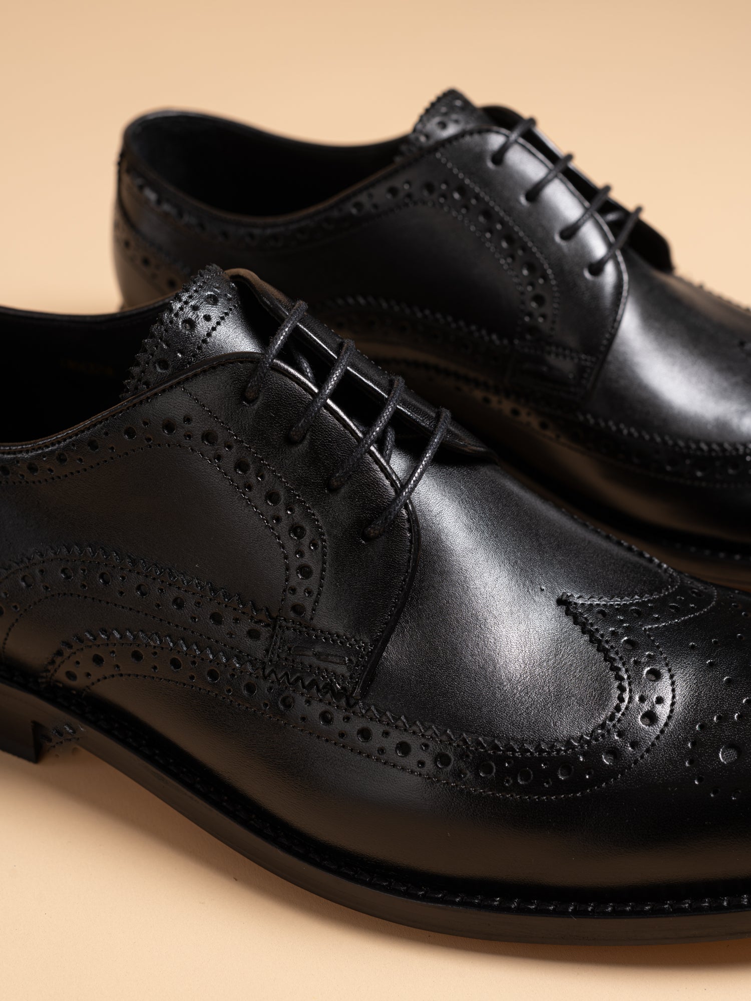 Our Derby Kent Shoes in the "Full Brogue" style are the ultimate example of British style. The particular design beautifully blends both contemporary and conventional fashion thanks to its meticulous handmade elements like the mustache (Wingtip), perforations, and seams at the end of the laces. This Kent will complement your everyday style whether you use it with jeans or formal trousers.