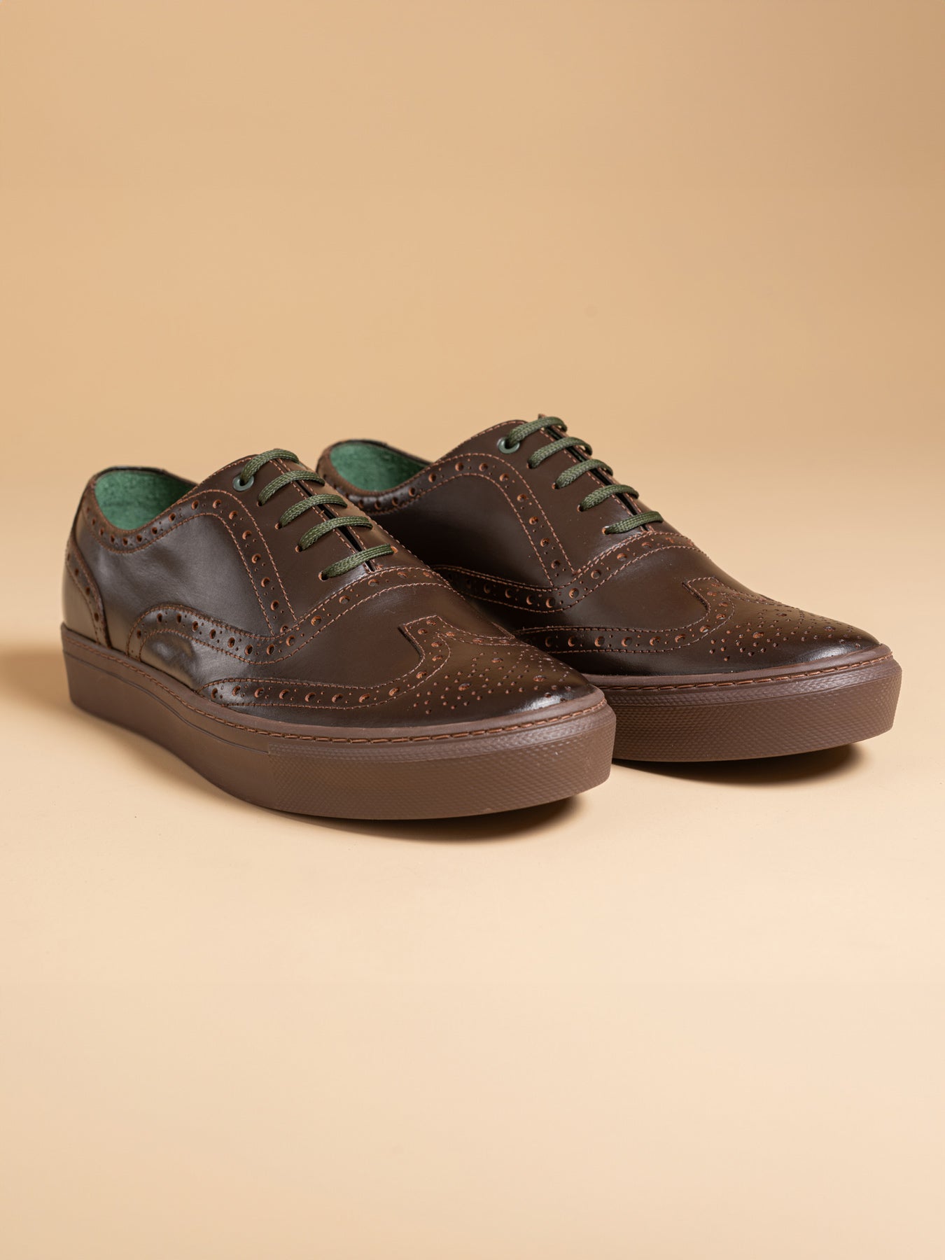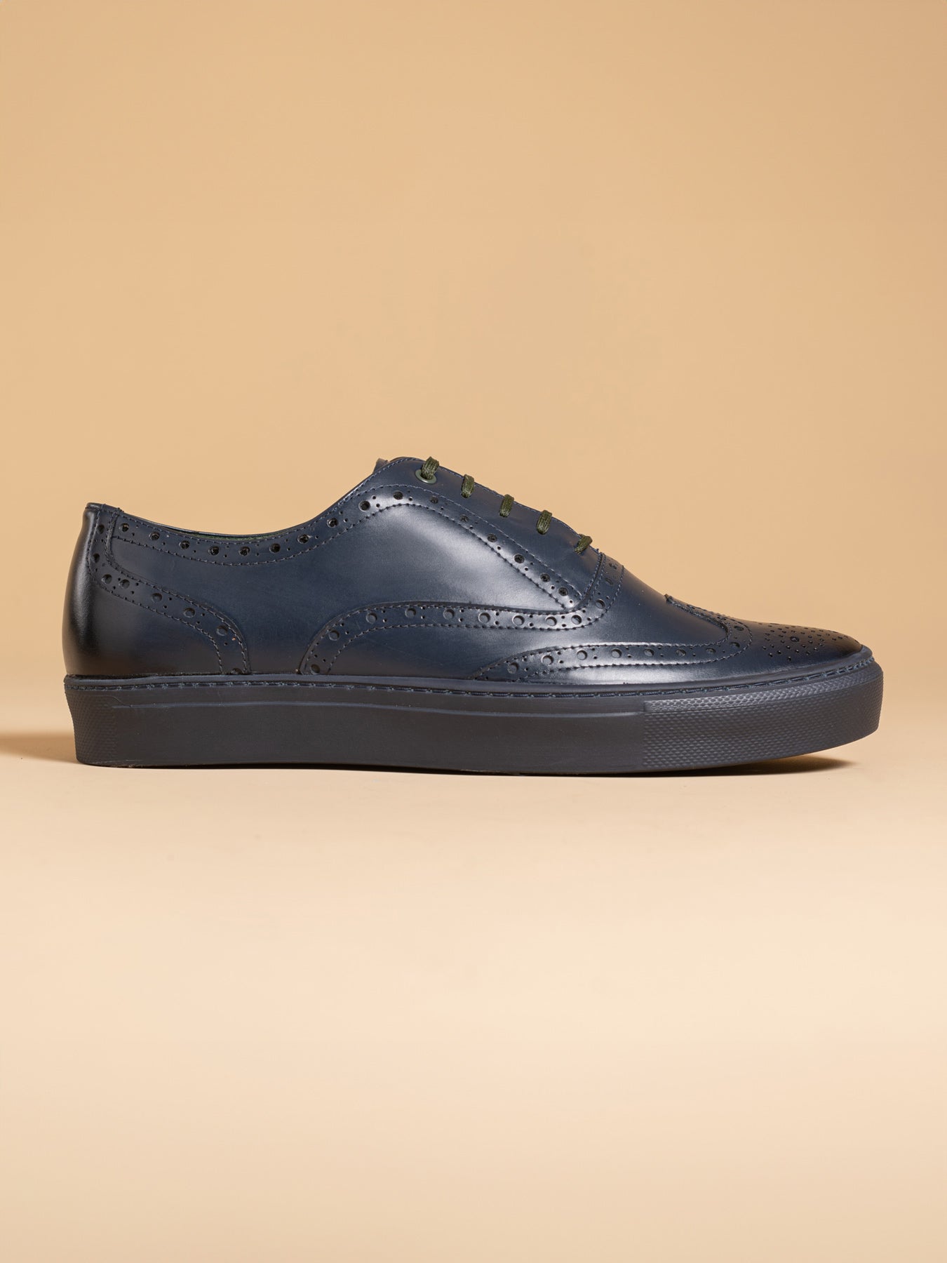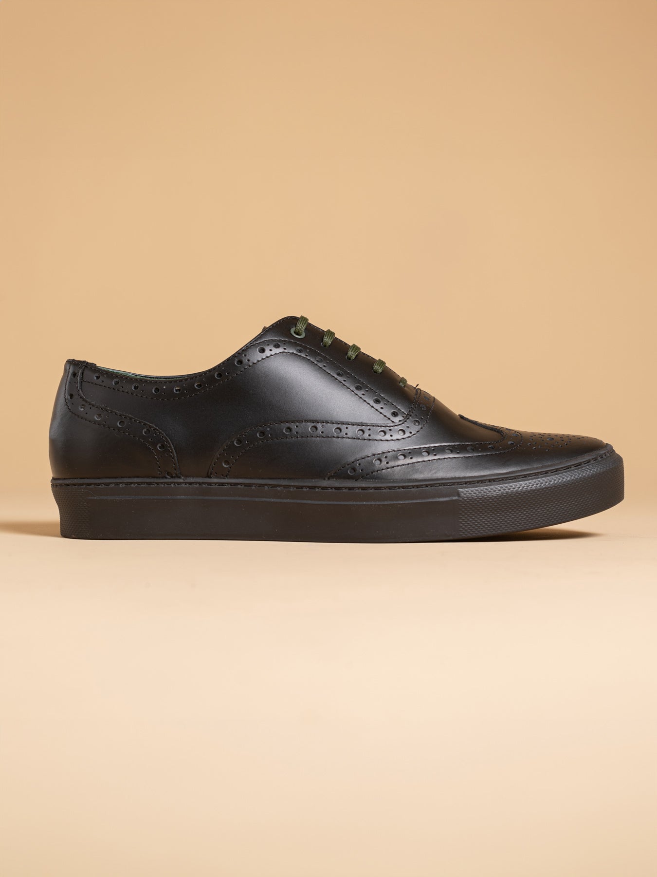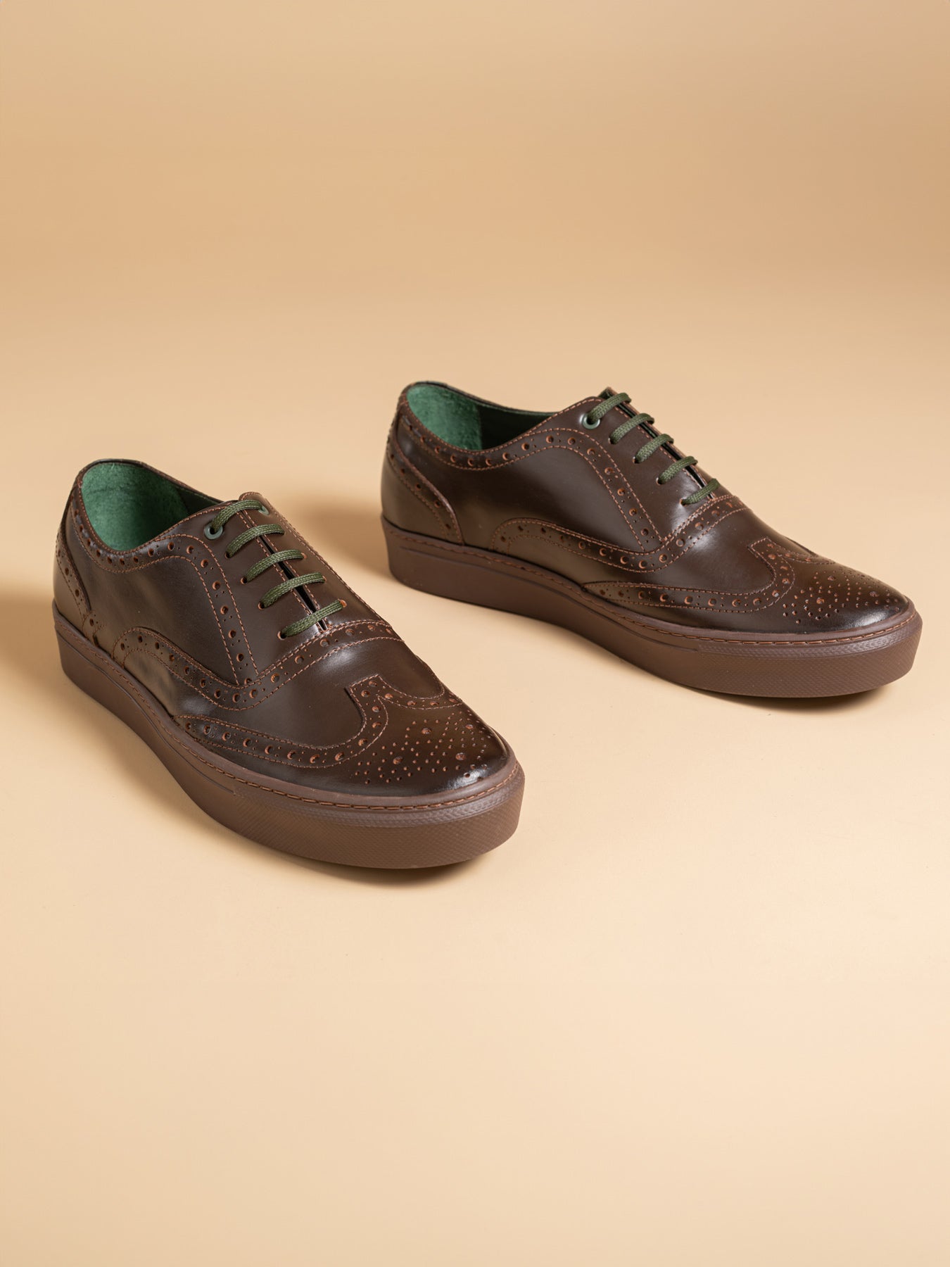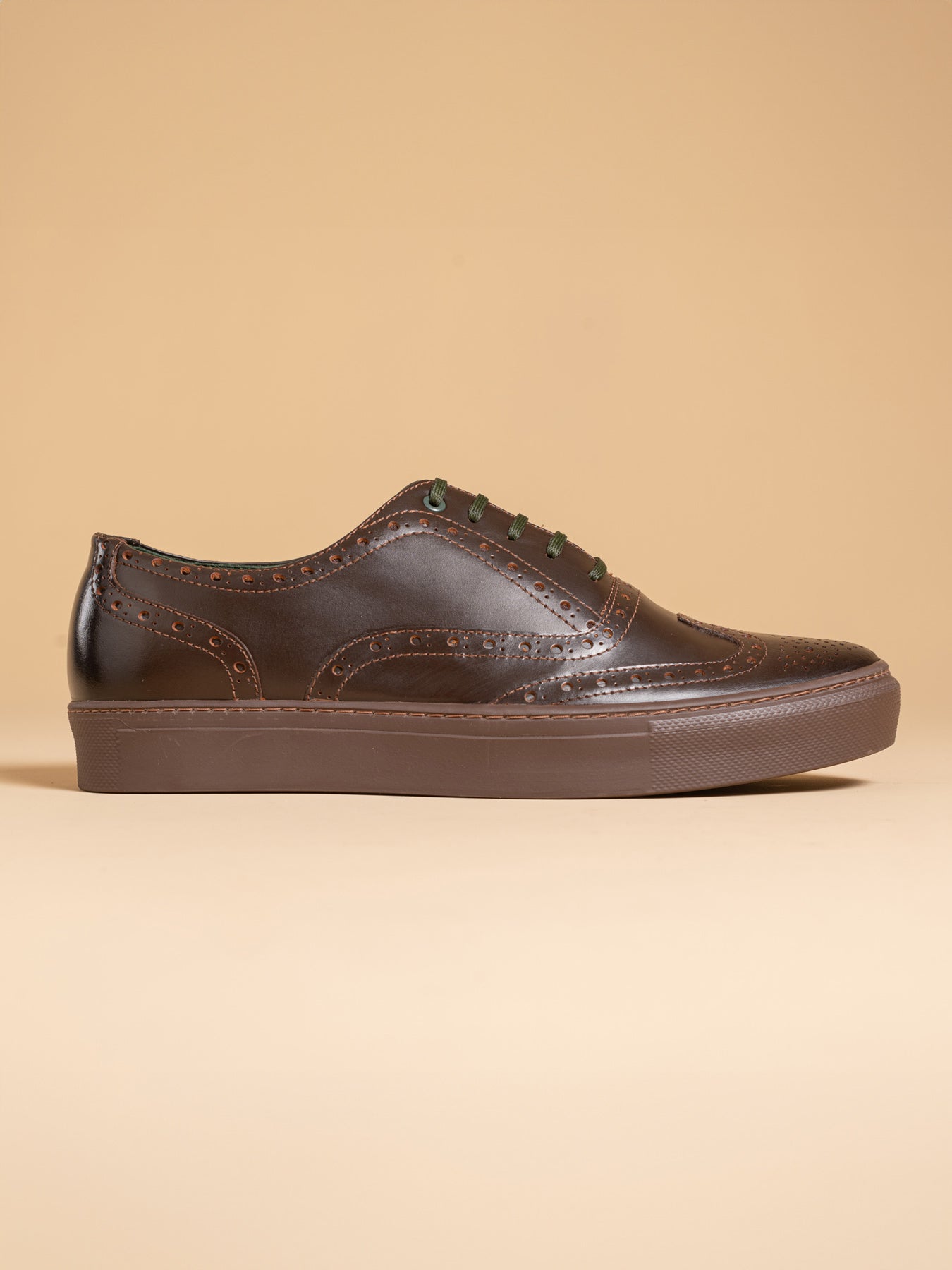 The innovative Bolton Oxford 'Full Brogue' sneakers. These sneakers merge the dignified look of traditional full brogue dress shoes with the ease of casual footwear, thanks to their rubber sole. This fusion creates a piece that champions a refined yet straightforward approach, ideal for anyone looking to subtly stand apart. Designed for the discerning, enhancing your journey beyond the usual paths.