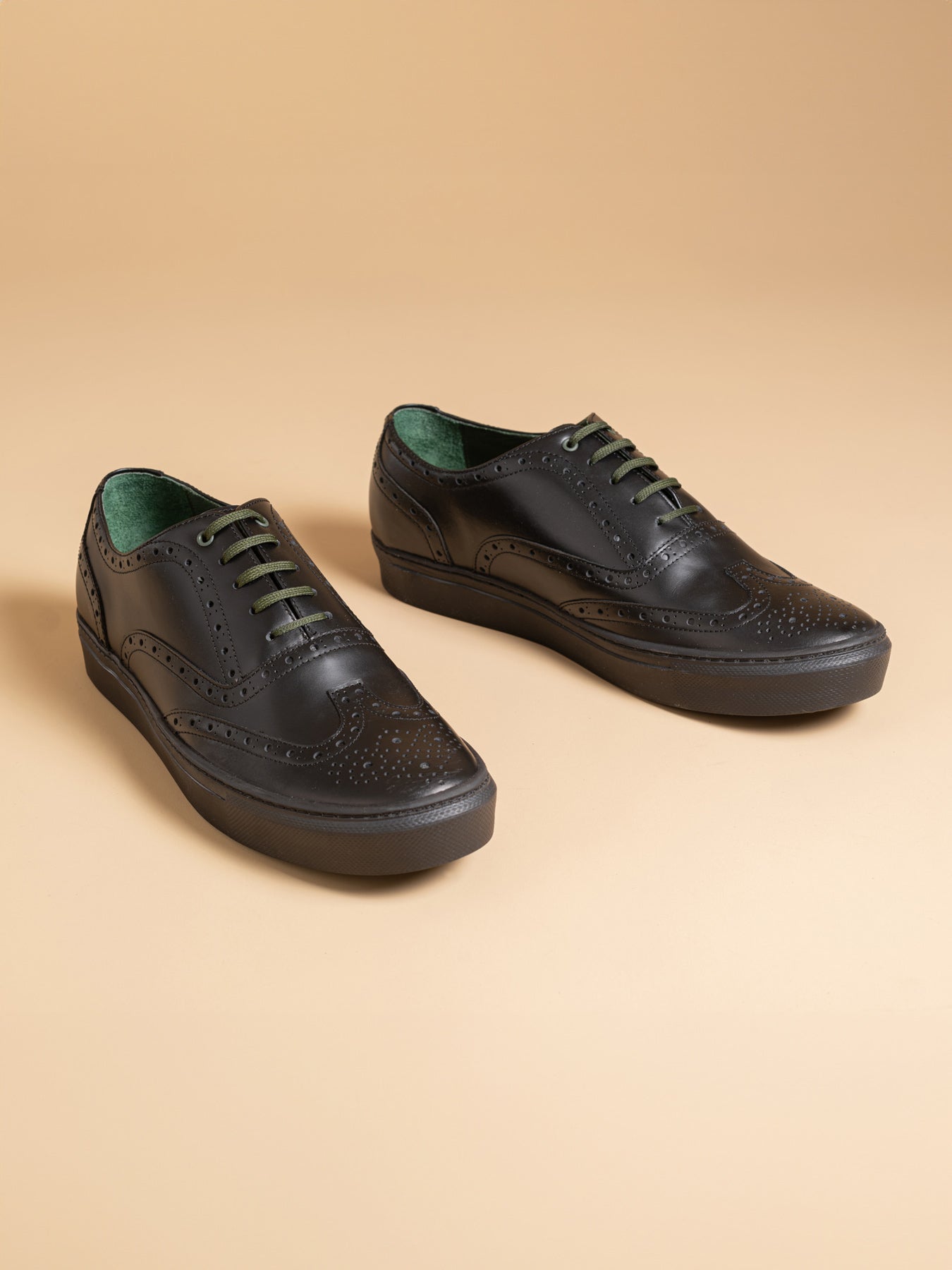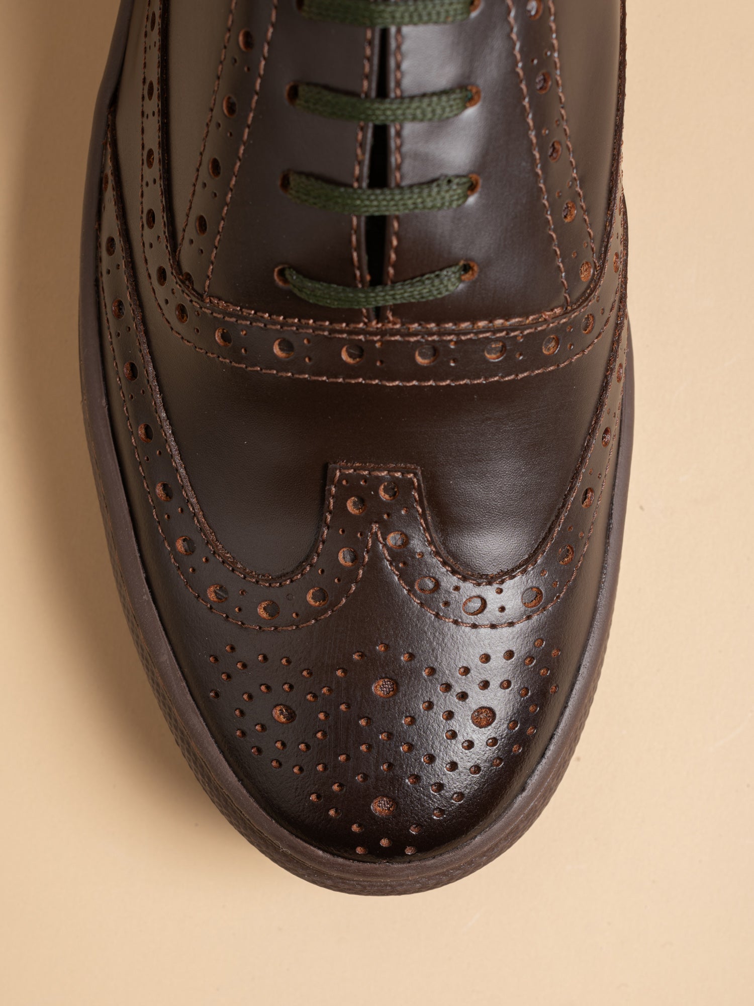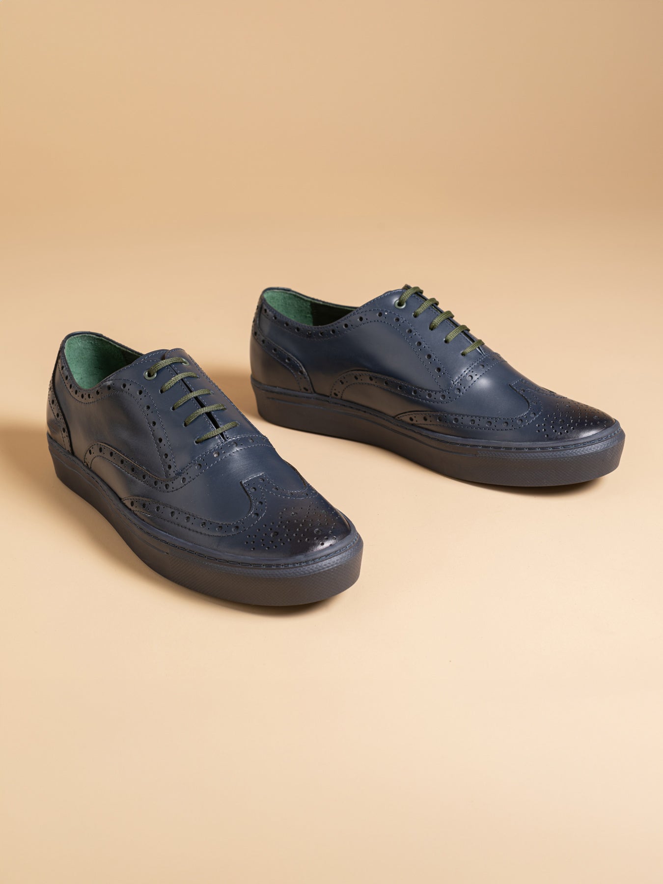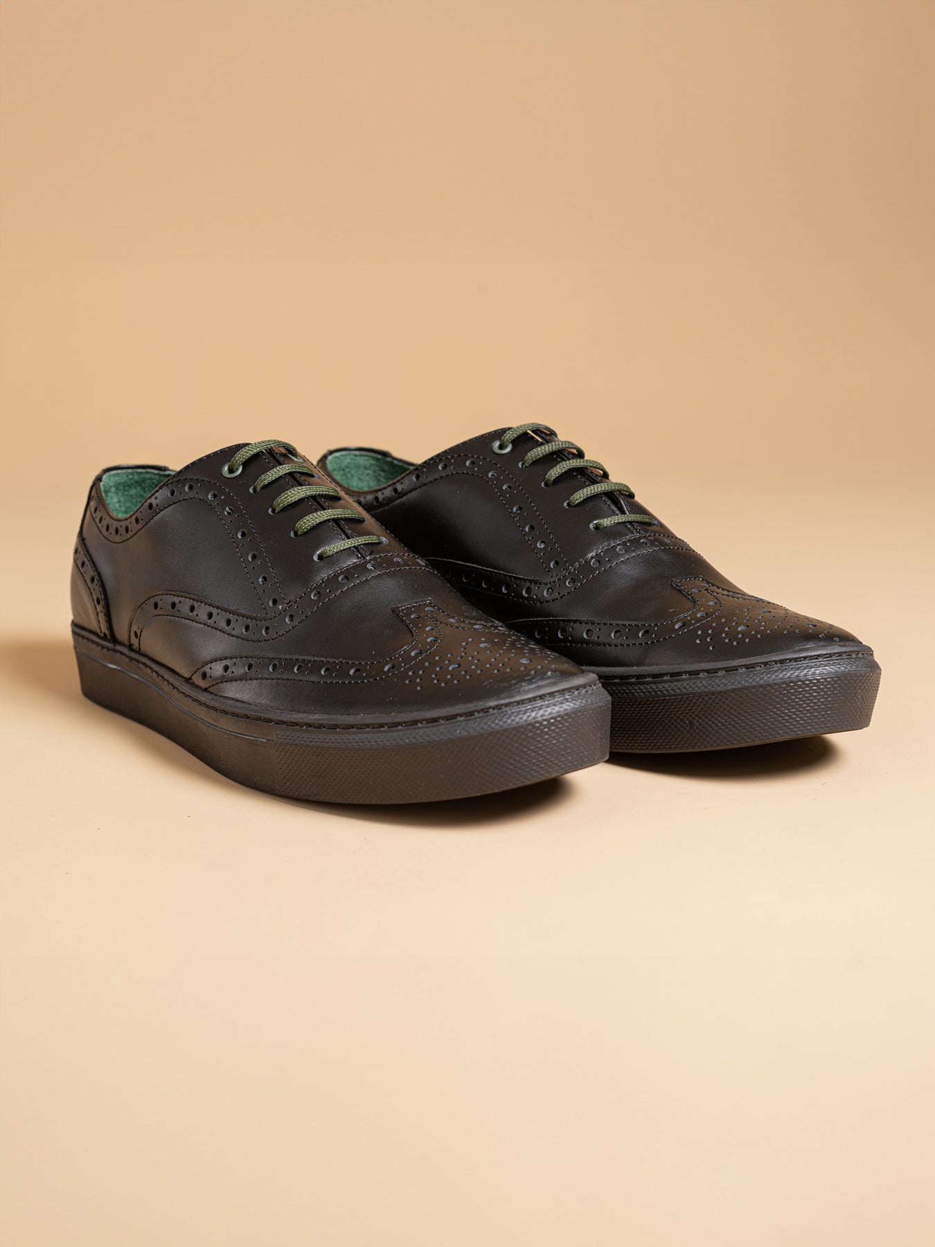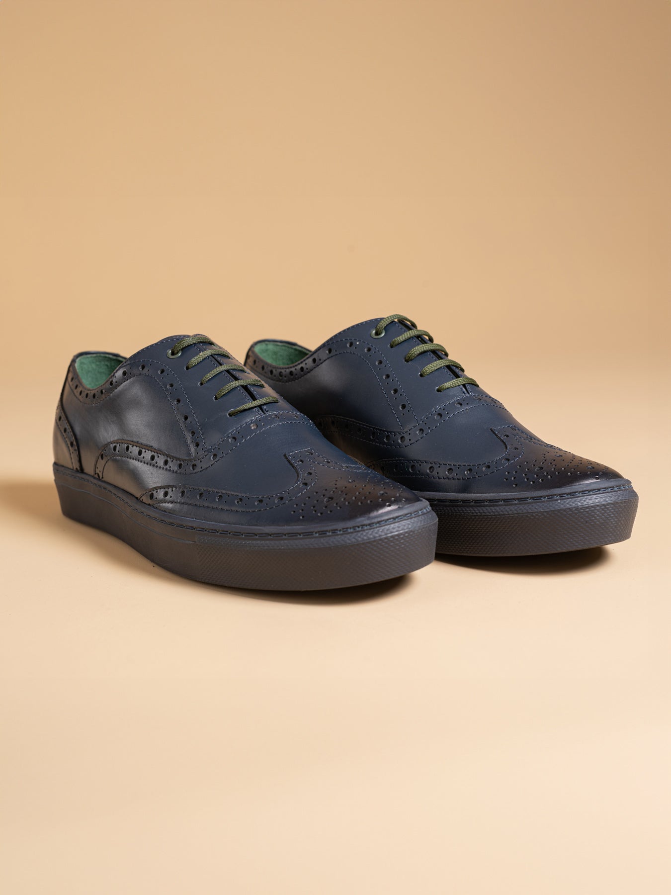 The innovative Bolton Oxford 'Full Brogue' sneakers. These sneakers merge the dignified look of traditional full brogue dress shoes with the ease of casual footwear, thanks to their rubber sole. This fusion creates a piece that champions a refined yet straightforward approach, ideal for anyone looking to subtly stand apart. Designed for the discerning, enhancing your journey beyond the usual paths.