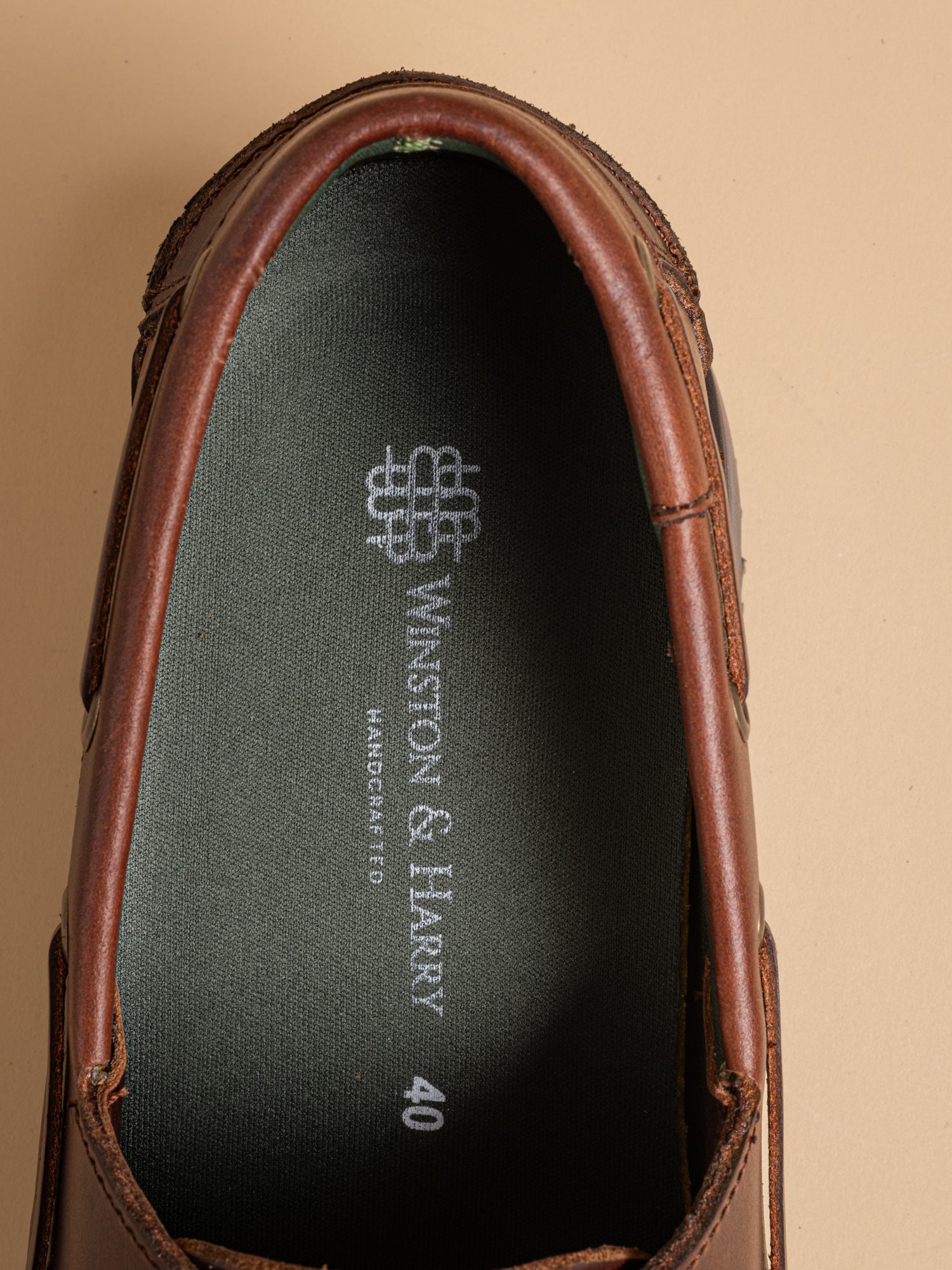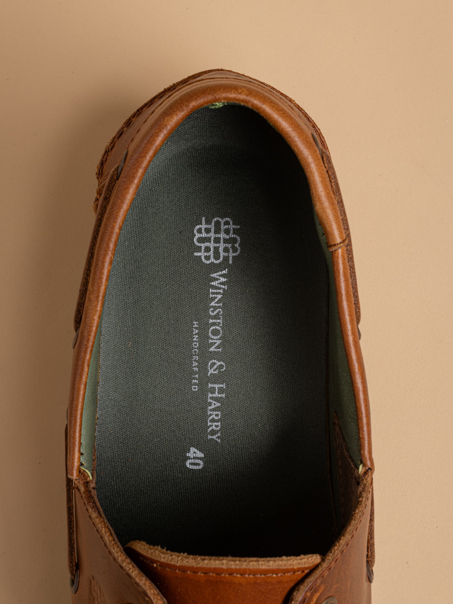 Meet the Nautico III Boat Shoes: the ultimate choice for the urban adventurer. Crafted with premium full-grain leather and robust Comando City rubber soles, these shoes are designed to thrive in the urban landscape. The adaptable and fully breathable inner sole, ensures your comfort as it molds to your foot's unique shape with each step. These shoes seamlessly blend enduring comfort and reliable durability, all while maintaining the timeless elegance of the classic boat shoe style.